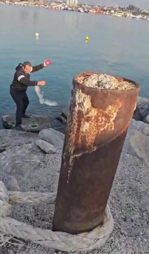 Hatay’ın Dörtyol ilçesi sahilinde balık tutan İdris Kurt’un oltasına martının takıldığı anlar kameraya yansıdı. Balığa niyetle attığı oltasına martı takılan Kurt’un ve ailesinin tepkisiyse gülümsetti.