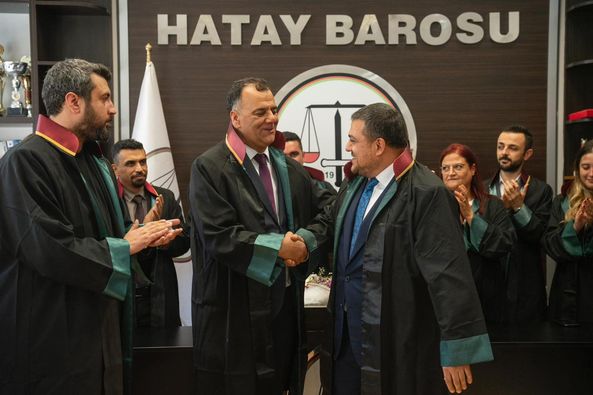 HATAY Barosu`nun Olağan Genel Kurulu sonrası mazbatasını alan Baro Başkanı Av. Hatay Tut, Yönetim, Disiplin, Denetleme Kurulu üyeleri ve TBB Delegeleri yapılan devir teslim töreniyle göreve başladı. Geçmiş dönem Baro Başkanı Av. Erhan Nizamoğlu, Baro Başkanı Av. Hatay Tut, Yönetim, diğer kurullara seçilen avukatlar ve TBB delegeleri ile bir araya geldi. Önceki dönem başkanı Av. Erhan Nizamoğlu yeni seçilen başkan Av. Hatay Tut’a çiçek takdim ederek göreve seçilen bütün kurullara başarılar diledi.
