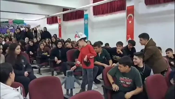 Paşa Karaca Anadolu İmam Hatip Lisesi’ne Teknofest Hatay Sorumlusu Müslüm Ateş’in katıldığı proje tanıtımı yapıldı. İskenderun Emel Akçay İlkokulu 3. sınıf öğrencisi Yaşar Mete Genç’in eline geçirdiği atık malzemelerden ürettiği robot, saat ve akıllı çerçeve tanıtıldı. Çalıştığı proje üzerinde tanıtımını yapan Yaşar Mete Genç lise öğrencilerinin bakışları arasında yaptığı atıklardan robotu yürütünce alkış ve destek aldı.
