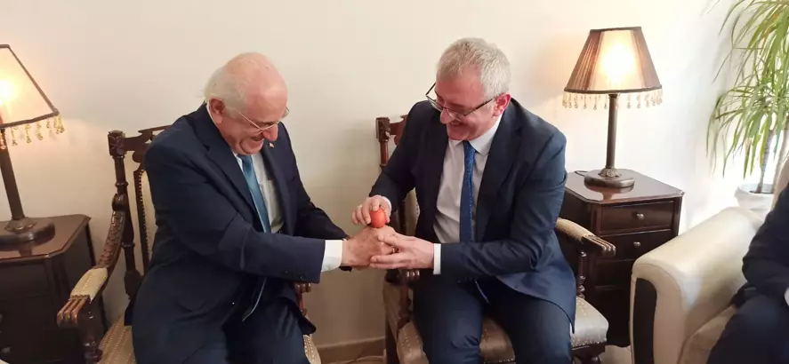 İskenderun protokolü, Paskalya Bayramı dolayısıyla, Aziz George Rum Ortodoks Kilisesi’ni ziyaret ederek cemaatin bayramını kutlayıp, geleneksel şekilde yumurta tokuşturdu.