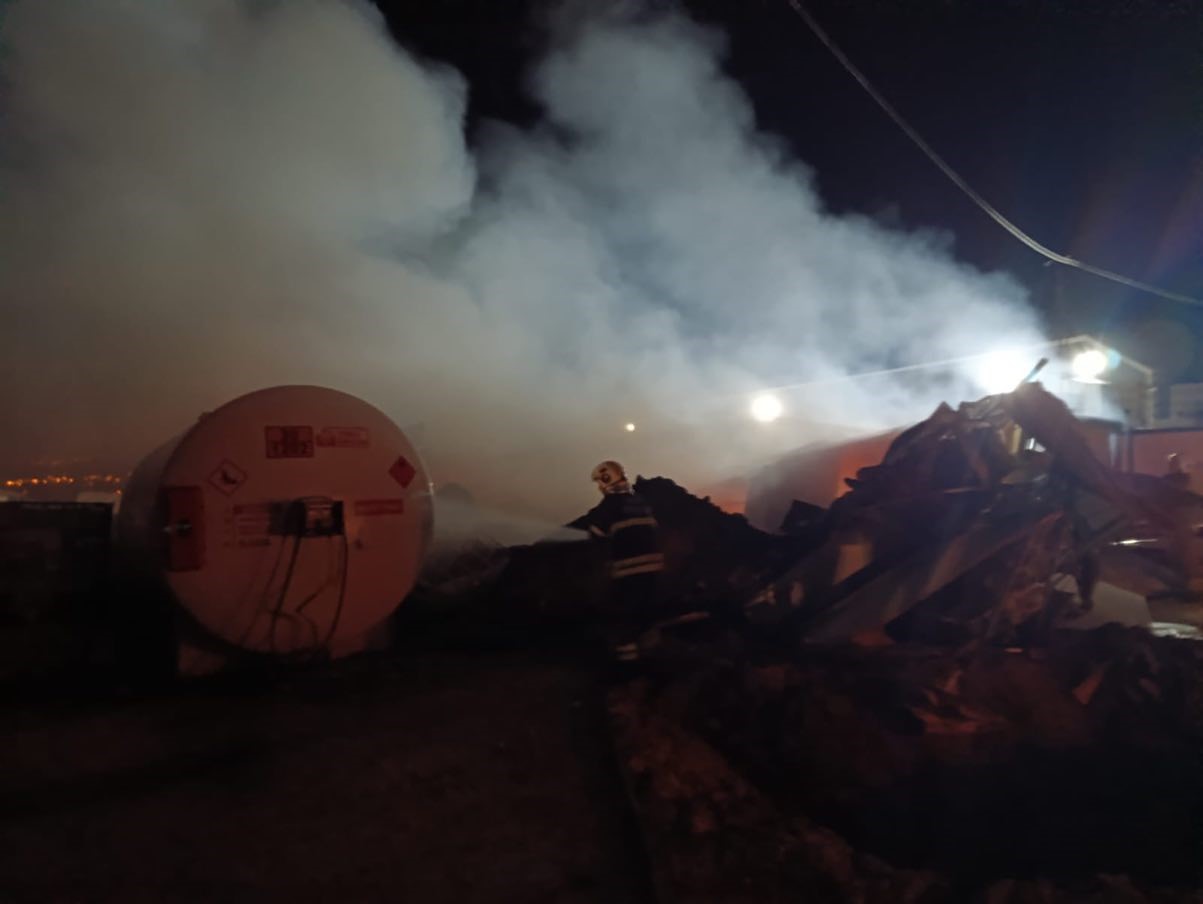 Hatay’da şantiye alanında işçilerin kaldığı konteyner yatakhane yanarak kullanılmaz hale geldi.