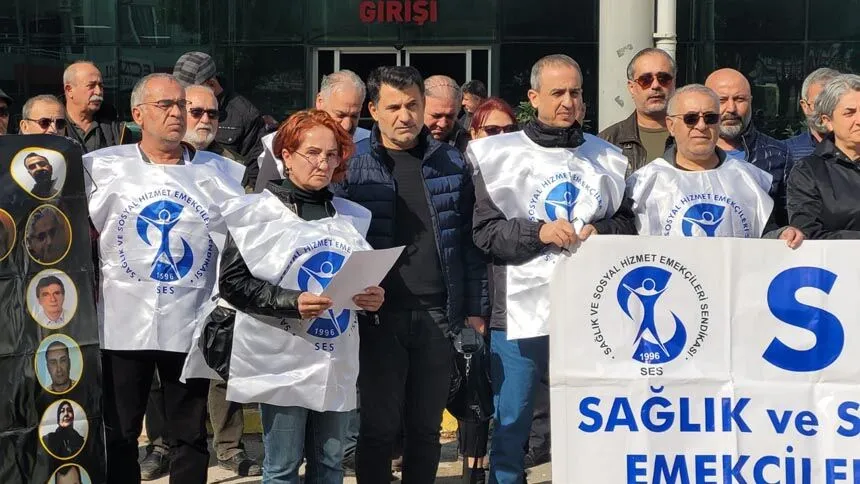 Sağlık ve Sosyal Hizmet Emekçileri Sendikası (SES) üyeleri 6 şubat depremlerinin ikinci yıl dönümünde hastane önünde bir basın açıklaması yaparak “yaşananları unutmayacağız unutturmayacağız “dediler