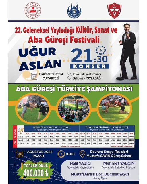 22. Geleneksel Yayladağı Kültür, Sanat ve Aba Güreşi Festivali Başlıyor.