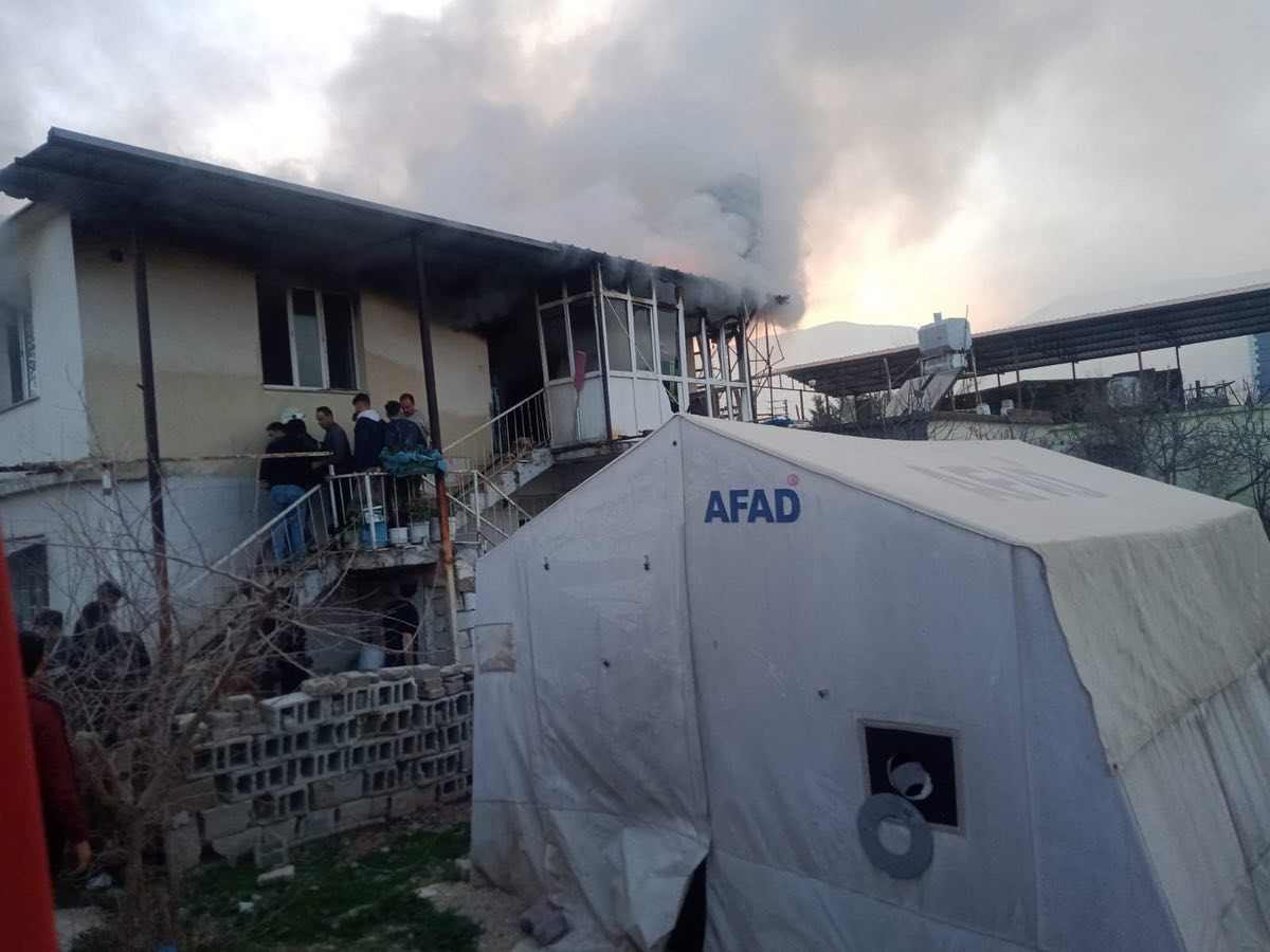 Hatay’ın Kırıkhan ilçesinde 2 katlı ev yaşanan yangında zarar gördü.