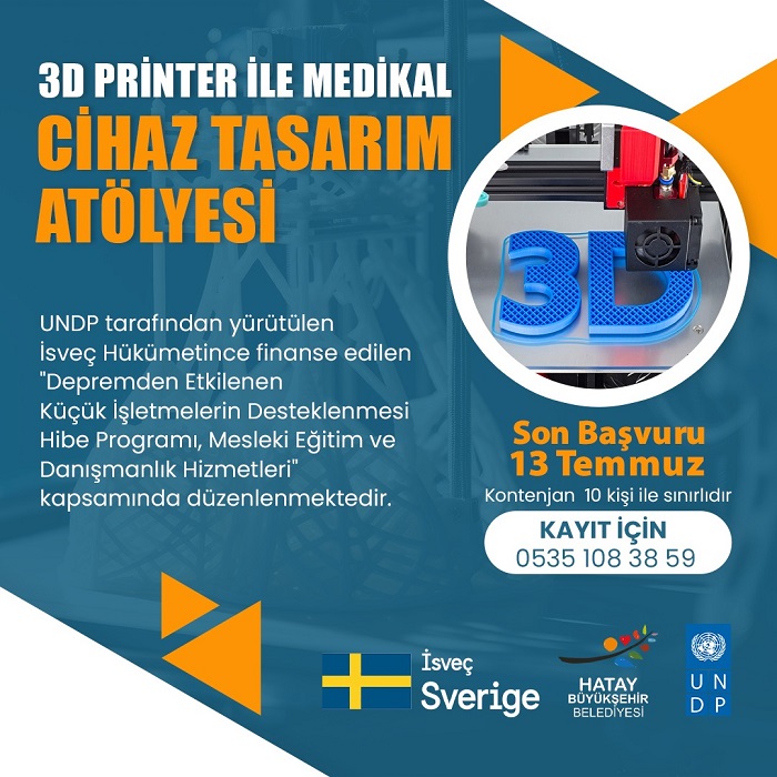 Hatay’da 6 Şubat depremlerinden etkilenen küçük işletmeleri desteklemek amacıyla düzenlenen eğitim atölyesi, katılımcılara 3D baskı teknolojisi kullanma ve medikal cihazlar tasarlama konularında derinlemesine bilgi ve pratik yapma imkânı sundu.
