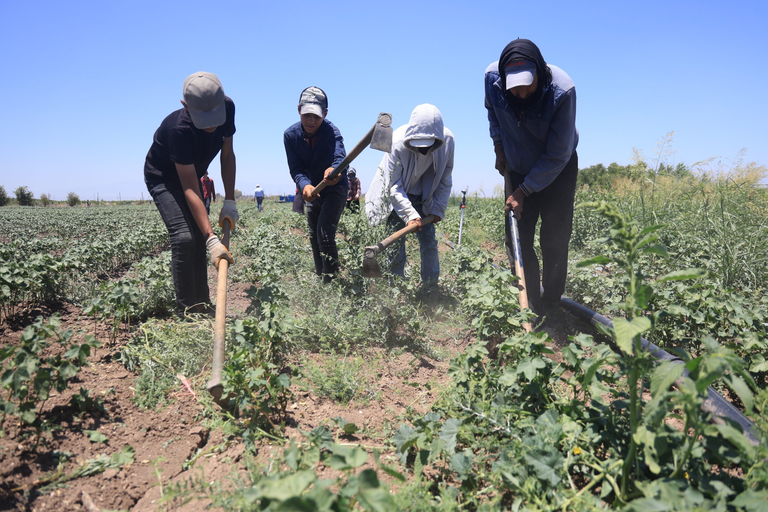 Sıcak havalarda açık alandaki tarım arazisinde çalışmanın zor olduğunu söyleyen Dolgun, “Sıcak ama biz de bunun için sabah 04.00’te işçileri toplamaya başlıyoruz. Tarlaya yetişene kadar 5’te iş başı yapıyoruz. Öğlen yemeğine oturmuyoruz. Hava sıcak olduğu için saat 12.30’ta paydos yapıyoruz sıcağa kalmamak için. Yabani otlar olursa pamuk yetişmez. Bu otları bırakırsak pamuktan daha yüksek olur ve verimi düşer. Hayat şartları biraz zor ve yevmiyeler de aslında yetersiz. Yine de mecbur çalışıyoruz yani ne yapalım. Ben 5 yıldır bu işi yapıyorum, Sıcaklıklara alıştım. İşçi de alıştı. Bazen işte böyle hava çok sıcak oluyor. Mesela 42 derece veya 44 dereceyi gördük. 44 dereceyi gördüğümüz günler mecburen yarım yevmiye çalışıyoruz. İşçiler sıcağı sevmiyor, genelde ağaç işlerini tercih ediyor ama sürekli ağaç işi de olmaz” ifadelerini kullandı.