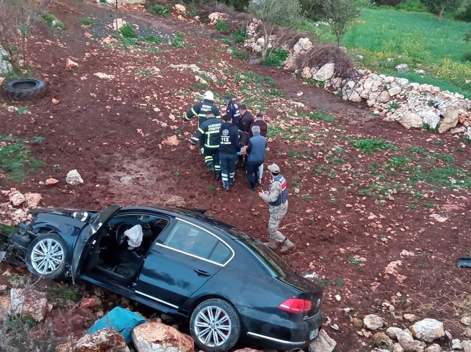Yayladağı İlçesi Yukarıokçular Mevkiinde Direksiyon Hakimiyetini Kaybeden Otomobil Kontrolden Çıkarak Uçuruma Yuvarlandı