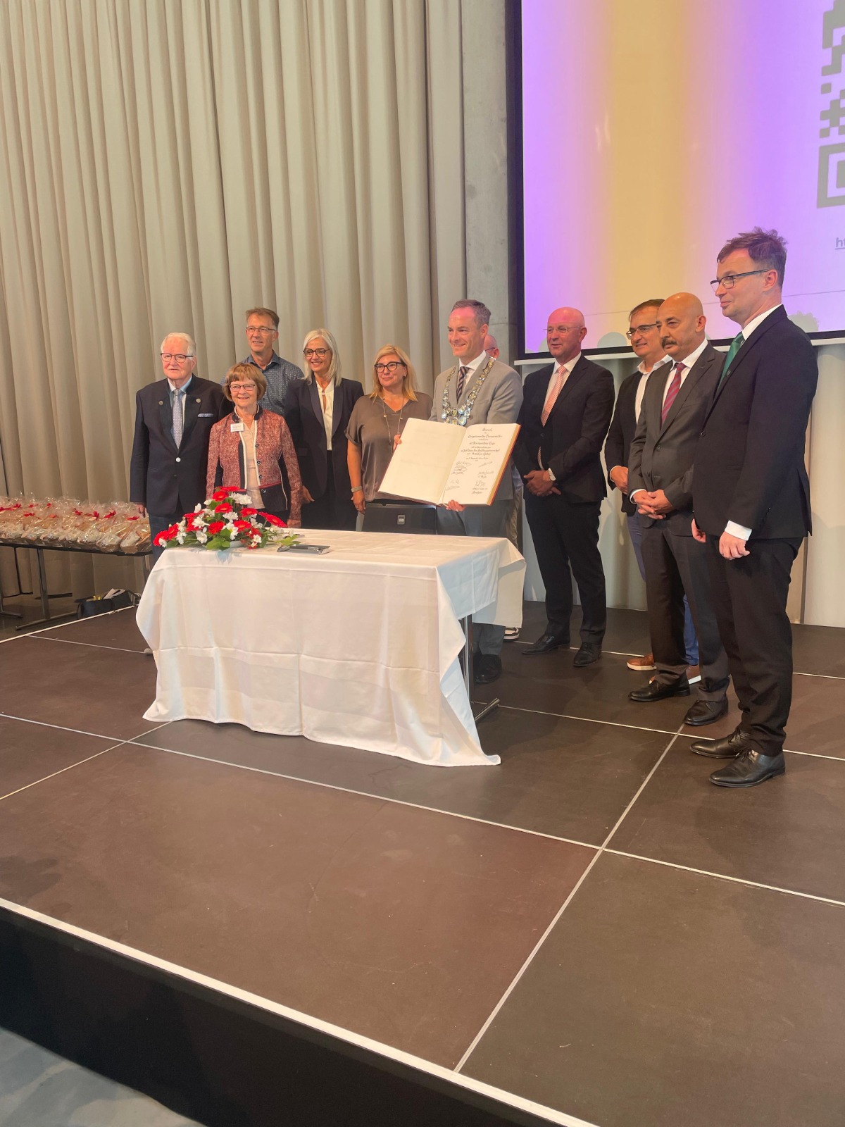 Ziyaret kapsamında iki şehir arasındaki dostluğu pekiştirmek amacıyla, Hatay heyeti, HBB Başkanı Mehmet Öntürk adına Aalen Belediye Başkanı Frederick Brütting’e anlamlı bir hediye takdim etti.