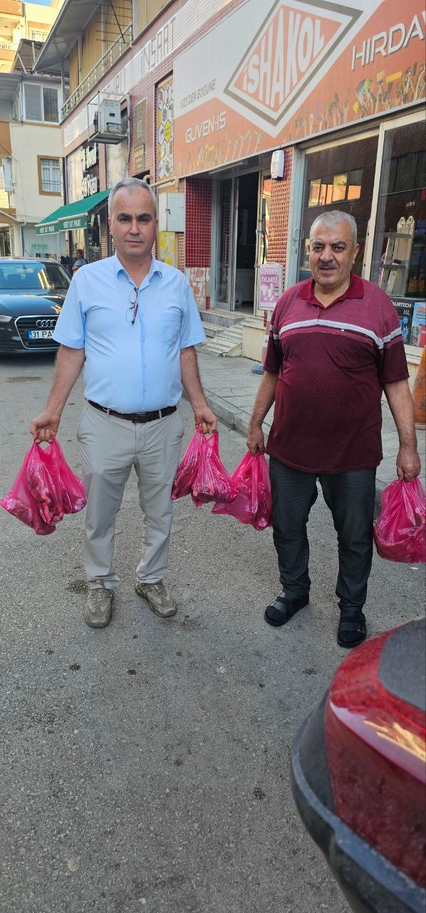 Depremzede ve ihtiyaç sahibi ailelere kurban eti dağıttı. Dağıtım ile ilgili olarak