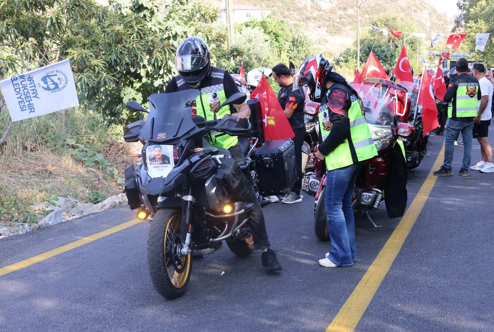 Serinyol-Madenli Yolu’nun protokol üyelerinin kurdele kesimiyle resmen açılmasının ardından 50 profesyonel motosiklet sporcusu, zorlu Amanosların eteklerindeki yolu deneyimleyerek vatandaşlara ilk sürüş heyecanını yaşattı.
