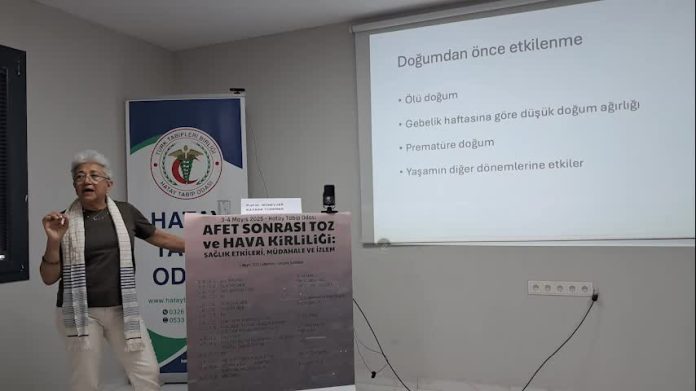 Hatay Tabip Odası‘nca düzenlenen “Afet sonrası toz ve hava kirliliği” çalıştayın ilk gününde, toz ve hava kirliliğinin, kadın, çocuk, üreme, solunum yolları ve ruh sağlığına, yine Hatay’da beton santrallerinin insan ve çevre sağlığına ne tür etkileri olduğuna dair sunumlar yapıldı. Sunumlarda, dünya genelinde yapılan bilimsel çalışmalar örnek gösterildi.