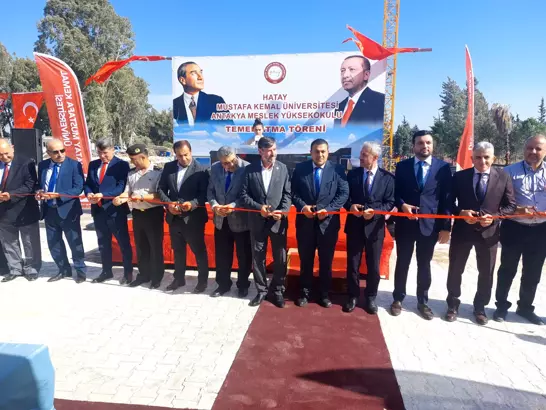 6 Şubat deprem felaketinde ağır hasar almasından dolayı yıkılan Mustafa Kemal Üniversitesi Antakya Meslek Yüksekokulu temel atma töreni gerçekleştirildi.