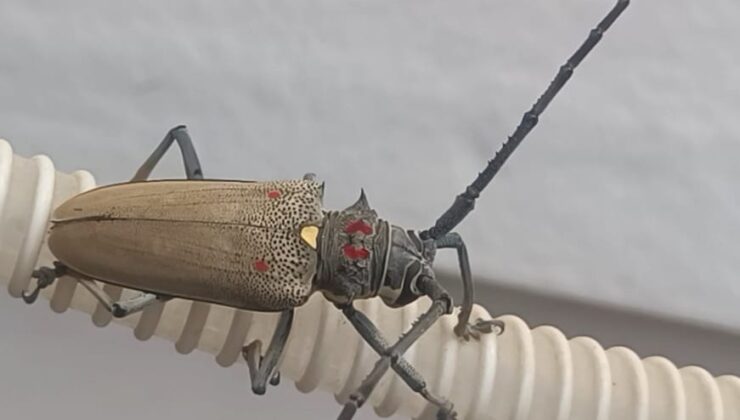 Bulundukları binadan çıkarken klima hortumu üzerinde görülen böceği dikkatle inceleyip araştırma yapan vatandaşların gördükleri böcek türünün ‘Teke Böceği’ olarak adlandırılan ve incir ağaçlarını kurutan bir orman zararlısı olduğu öğrenildi.