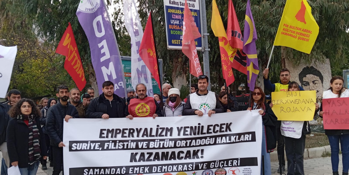 “Siyonizm ve Emperyalizm Bölgeyi Ateşe Atıyor” Basın açıklamasında, ABD, İsrail ve Türkiye’nin bölgedeki emperyalist çıkarlarını ilerletmek amacıyla hareket ettiği belirtilerek, Suriye’deki cihatçı grupların Halep başta olmak üzere çeşitli bölgelerde işgal saldırılarına devam ettiği ifade edildi. Açıklamada, bu saldırıların Filistin ve Lübnan’daki direnişe destek veren Suriye Devlet Başkanı Beşar Esad’a yönelik tehditlerle bağlantılı olduğu vurgulandı. Samandağ Demokrasi Güçleri, Türkiye’nin bölgede cihatçı grupları destekleyerek emperyalist ve siyonist politikaların bir aracı haline geldiğini öne sürdü. Ayrıca, AKP’li Mustafa Varank’ın Halep işgaline dair yaptığı açıklamalar eleştirilerek, Arap Alevi halkına yönelik katliam çağrılarının devlet eliyle sistematik hale getirildiği iddia edildi. “Halkların Birlikte Mücadelesi Şarttır” Açıklamada, emperyalizme karşı tüm halkların ortak bir mücadele zemini oluşturması gerektiği ifade edildi. Arap, Kürt, Türkmen, Dürzi, Ezidi ve Ermeni gibi halkların tarihi direniş deneyimlerinin bu süreçte yol gösterici olduğu belirtildi. Suriye’deki direnişin yalnızca bölge halklarının değil, tüm dünya halklarının mücadelesiyle birleşmesi gerektiği vurgulandı. “Yağma ve Talan Politikalarına Karşı Direneceğiz” Samandağ Demokrasi Güçleri, bölgedeki barınma sorunlarına çözüm üretilmediğini, bunun yerine rant ve yağma politikalarının sürdürüldüğünü dile getirdi. Rezerv alan uygulamalarıyla halkın yaşam alanlarına el konulduğunu, doğanın ve bölgenin talan edildiğini ifade ederek bu politikaların savaş stratejilerinin bir parçası olduğuna dikkat çekti. “Anti-Emperyalist Mücadeleyi Büyütmeliyiz”