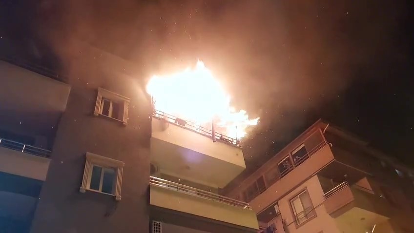 Hatay’da dört katlı apartmanın en üst katı alevlere teslim oldu. Yangın, diğer dairelere sıçramamadan söndürüldü
