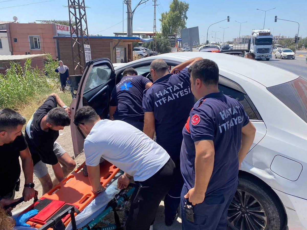 Antakya – İskenderun Yolu MKÜ kavşağında, iddiaya göre kırmızı ışıkta geçen araca çarpmamak için manevra yapan araç aydınlatma direğine çarptı.