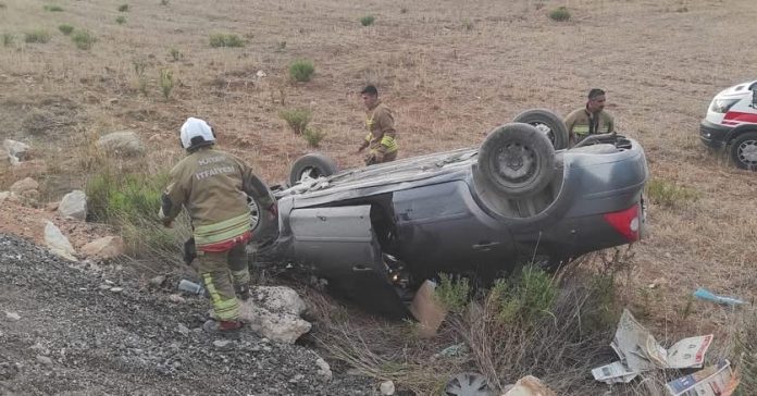 Araç takla atarak ters döndü