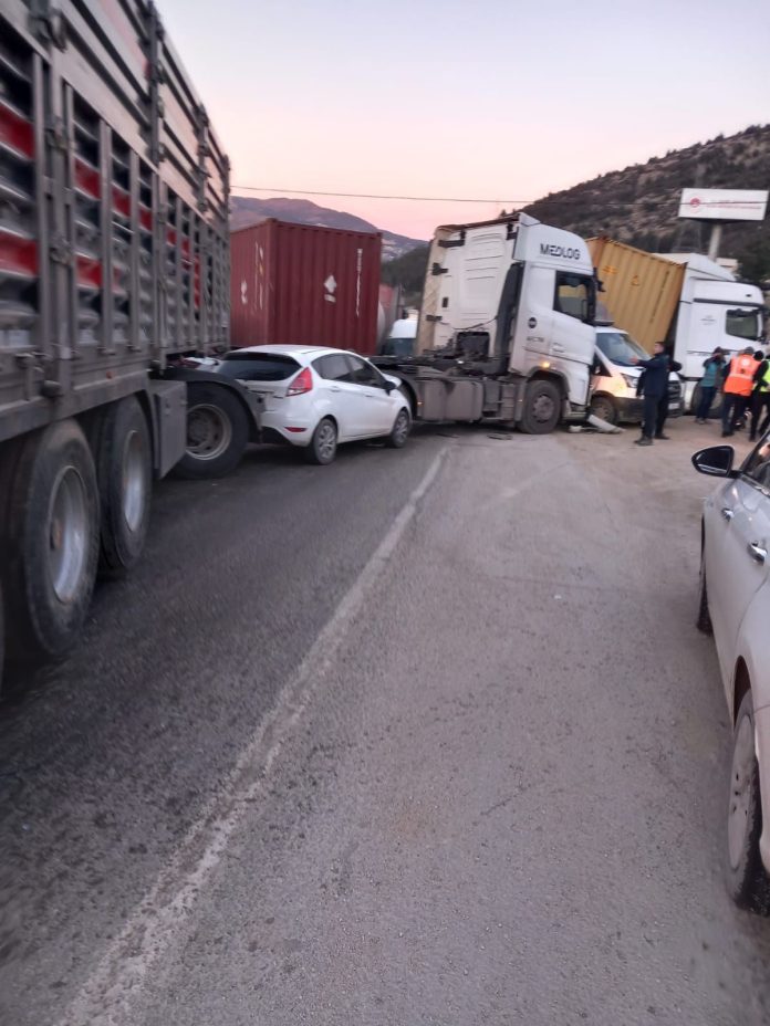 Hatay’ın Belen ilçesinde buzlanma nedeniyle yaşanan 12 aracın karıştığı trafik kazasında 11 kişi yaralandı.
