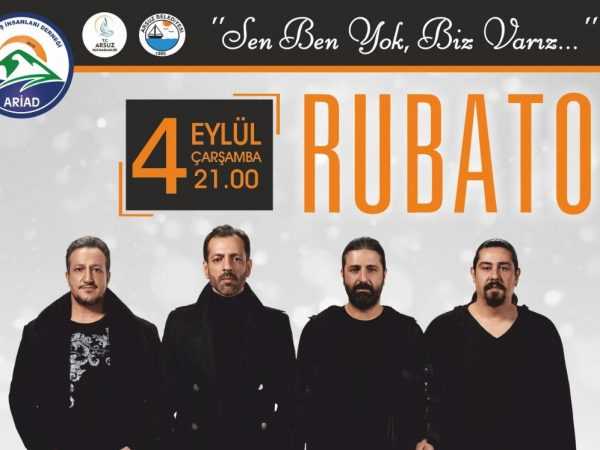 Arsuz İş İnsanları Derneği’nin eğitime destek amaçlı düzenleyecekleri konserde ünlü sanatçı RUBATO 4 Eylül 2019 Çarşamba günü Arsuz GarajBar’da sahne alacak.