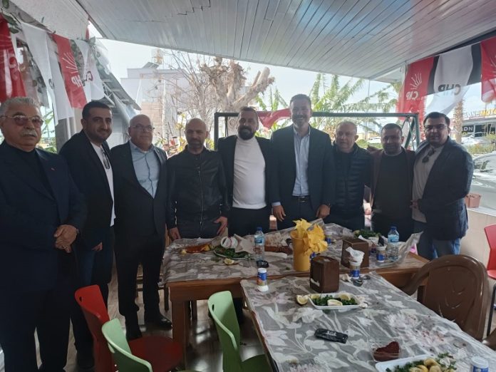 Arsuz Karaağaç’ta faaliyet gösteren Özerler Kasap Fırın işletmesinde Mavi Group Gayrimenkul Ortakları Ahmet Kırılmış ile İsmail Ünal’ın ev sahipliği ve Özerler Kasap Fırın işletmesi Levent Özer’in verdiği öğle yemeği davetine tüm ekibiyle birlikte katılan CHP Arsuz Belediye Başkan Adayı Sami Üstün, ilçeyi Arsuz halkıyla birlikte yönetmeye hazır olduklarını söyledi.