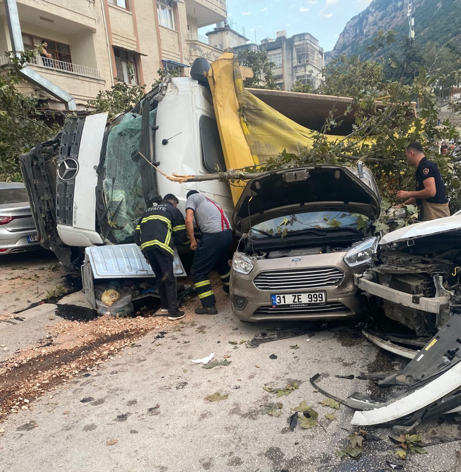 Feci kazada hafriyat kamyonu tam 7 araca çarparak durabildi. Kontrolden çıkan kamyon, 7 araca çarptıktan sonra devrildi.