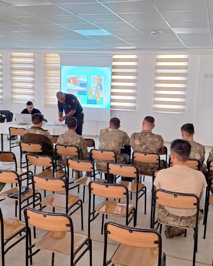 Hatay’da itfaiye ekipleri tarafından vatani Mehmetçiğe yangın güvenliği üzerine eğitim verildi.