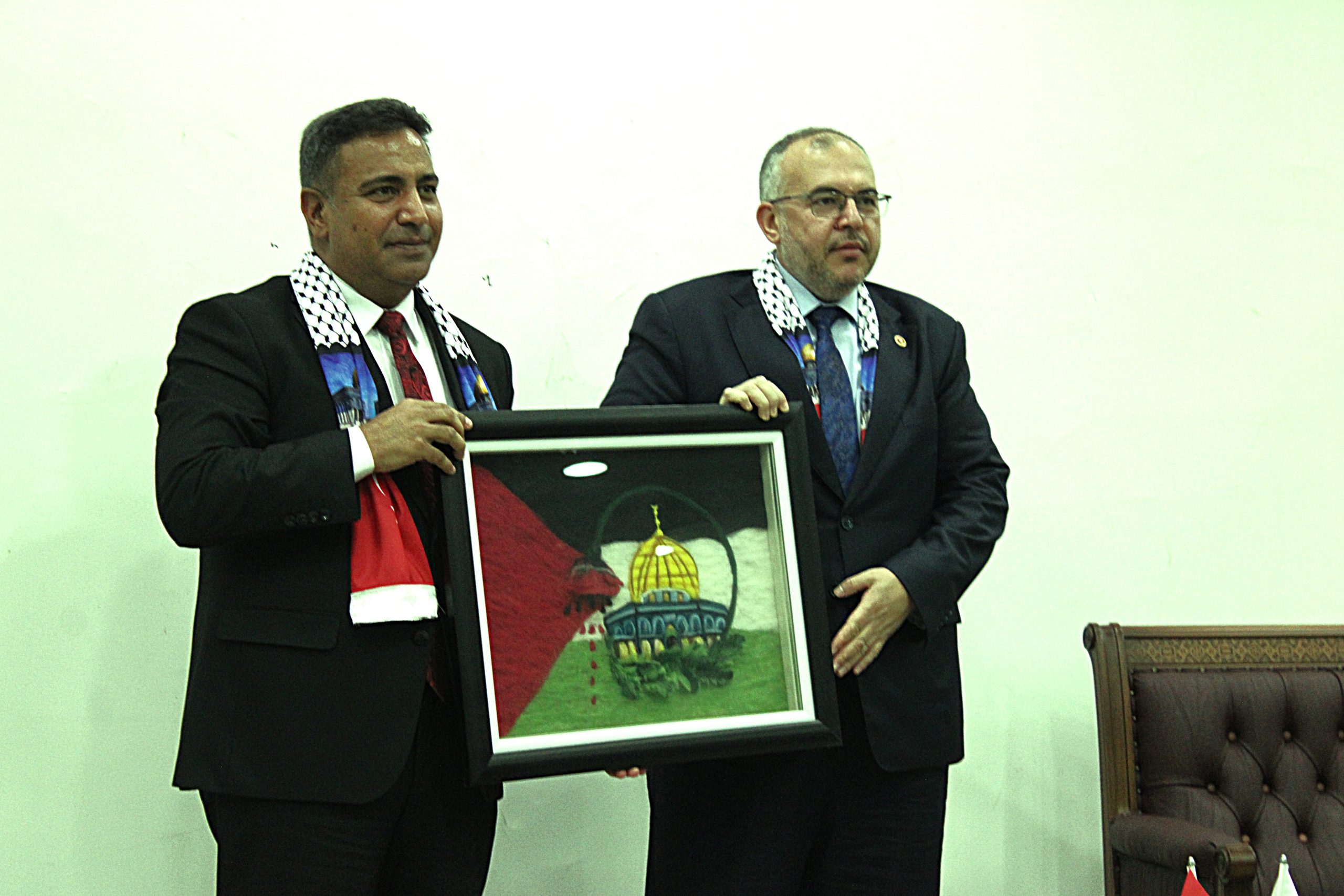 Milletvekili ÇALIŞKAN’ın soruları yanıtlamasıyla birlikte İSTE’nin misafir konuşmacı olarak davetine icabet ettiği için teşekkür eden İSTE Rektörü DURUEL’den Gazze’yi hatırlatacak hediye tabloyu Milletvekili Necmettin ÇALIŞKAN’a armağan ettiği an kameraya yansıdı ve konferans sona erdi.