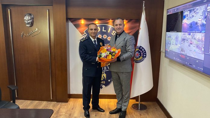 ATSİAD (Akdeniz Tüccar Sanayici İş İnsanları Derneği) Başkanı Mithat Ceritbinmez ve beraberindeki heyet, 10 Nisan Polis Haftası dolayısıyla İskenderun İlçe Emniyet Müdürü Nevzat Güneş ile Arsuz İlçe Emniyet Müdürü Volkan Türkmenoğlu’nu ziyaret etti.