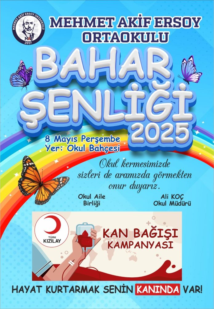 Mehmet Akif Ersoy Ortaokulu’nda bahar şenliği ile kan bağışı etkinliği düzenlenecek.