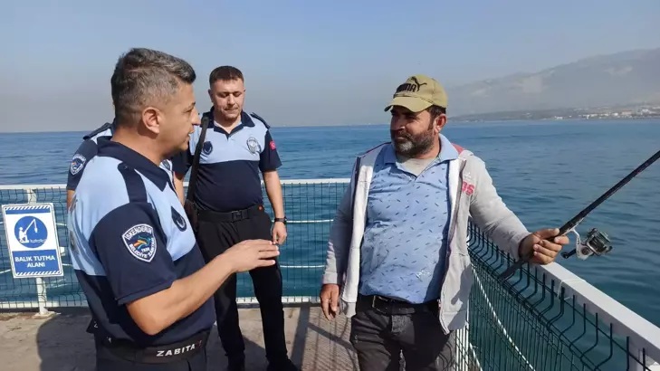 İskelenin yanlarında balık tutmanın yasaklanması ile İskenderun Belediye Zabıta Müdürlüğü ekipleri de balık tutmaya gelenleri uyarmaya başladı.