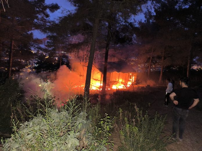 Alevlere teslim olan barakadaki yangın ormana sıçramadan söndürüldü.