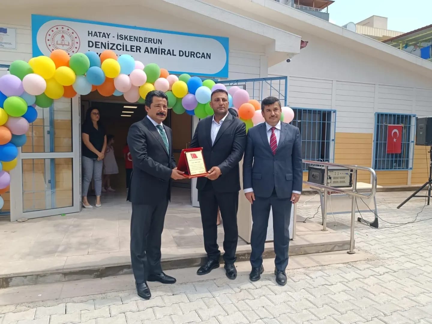İskenderun Kaymakamı Murat Sefa Demiryürek, Türkiye Gaziler ve Şehit Aileleri Vakfı Hatay Şubesi Başkanı Ahmet Ayaz’a, okullara sağladığı katkılarından dolayı plaket takdim etti. Bu anlamlı tören, Denizciler Amiral Durcan İlkokulu’nda gerçekleştirildi.