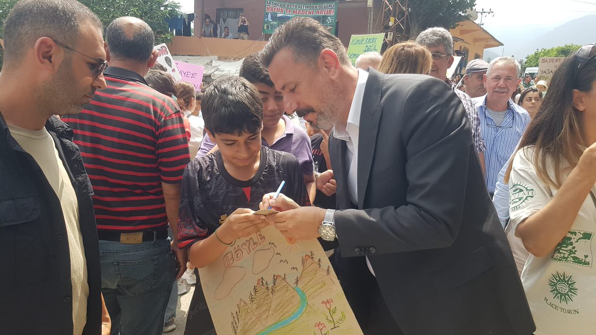 . Ne kadar büyük bir aile olduğumuzu gittiğimiz her yerde görüyor ve yaşıyoruz. Bu sorun bütün bölgemizin sorunu. Çünkü insanoğlunun yaşadığı her coğrafya bizim için çok kıymetli ve geleceğimiz için asla seyirci kalmayacağımız bir coğrafya. Maden ocaklarına karşı çıkacağız. Suyumuzu, doğamızı kirletmelerine hiçbir zaman izin vermeyeceğiz. Tarım ve Turizm şehri olarak bilinen ilçemizi, ne bugün nede başka bir gün kirletmelerine, Arsuz’umuza zarar vermelerine izin vermeyeceğiz,” ifadelerini kullandı.