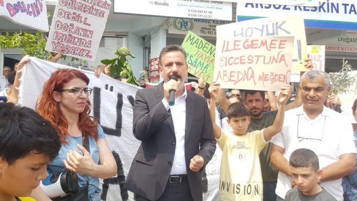 . Ne kadar büyük bir aile olduğumuzu gittiğimiz her yerde görüyor ve yaşıyoruz. Bu sorun bütün bölgemizin sorunu. Çünkü insanoğlunun yaşadığı her coğrafya bizim için çok kıymetli ve geleceğimiz için asla seyirci kalmayacağımız bir coğrafya. Maden ocaklarına karşı çıkacağız. Suyumuzu, doğamızı kirletmelerine hiçbir zaman izin vermeyeceğiz. Tarım ve Turizm şehri olarak bilinen ilçemizi, ne bugün nede başka bir gün kirletmelerine, Arsuz’umuza zarar vermelerine izin vermeyeceğiz,” ifadelerini kullandı.
