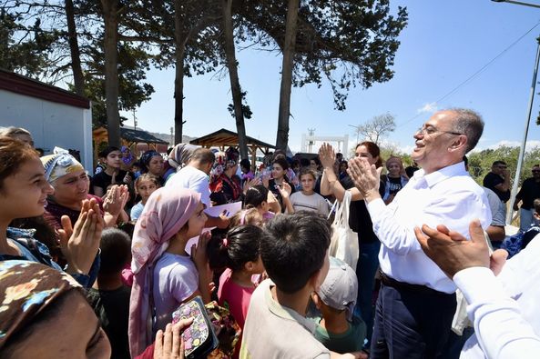 Antakya Belediye Başkanı İbrahim Naci Yapar, Maşuklu Mahallesi Savunma Sanayi Konteyner Kenti’nde çocuklarla bir araya geldi.