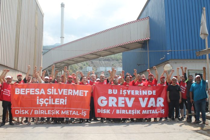 DİSK’e bağlı Birkeşik metal iş sendikası İskeİskenderun Organize Sanayi Bölgesi’nde bulunan İspanyol sermayeli Befesa Silvermet İskenderun Çelik Tozu Geri Dönüşümü A.Ş. işyerinde greve gittiklerini duyurdu