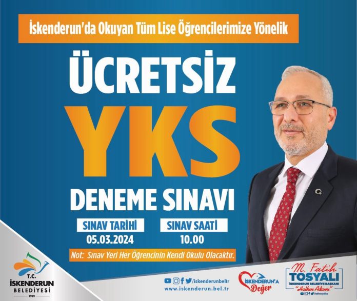 İskenderun Belediyesi tarafından Üniversiteye hazırlanan öğrencilere destek olmak amacıyla, İskenderun’da okuyan tüm lise öğrencilere yönelik ücretsiz YKS hazırlık deneme sınavı yapıyor.