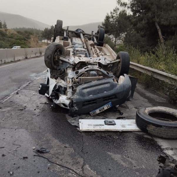 Ters dönen araçtan sürücü ve yanındaki yaralandı. Kaza sonrasında bölgeye gelen sağlık ekipleri yaralılara müdahale ederken, kurtarma ekibi ters dönen aracı kurtarmak için çalıştı