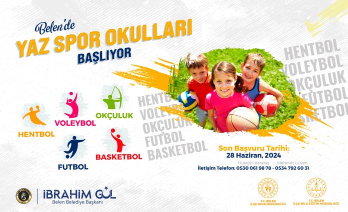 Belen Belediyesi, İlçe Spor Müdürlüğü ve İlçe Milli Eğitim Müdürlüğü iş birliğiyle bu yıl da geleneksel Yaz Spor Kursları kayıtları başladı. 28 Haziran 2024 tarihlerine kadar gerçekleşecek kurs kayıtlarında çocuklar, futboldan basketbola, voleyboldan hentbola ve okçuluğa branşında eğitim alabilecekler.