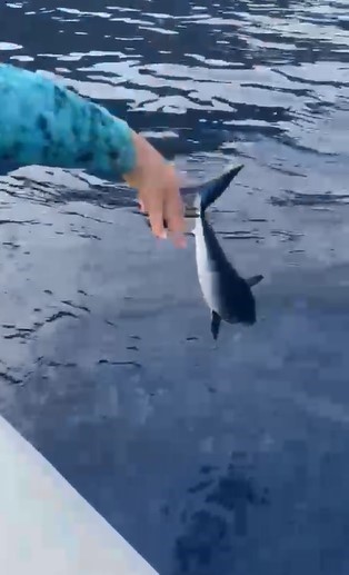 Hatay’da amatör olarak balıkçık yapan Cemil Yöndem, oltasına takılan yavru köpekbalığını, ‘Bir daha oltamıza gelme. Herkes bizim kadar vicdanlı olmayabilir’ diyerek denize bıraktı. Köpekbalığına nasihatte bulunan ve o anları kayıt altına alan amatör balıkçı ve arkadaşlarının o anları gülümsetti.
