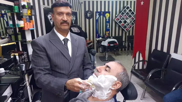 Reyhanlı’da mesleğe 9 yaşında çıraklık yaparak başlayan ve berberlik mesleğinde 47’nci yılına giren Selahattin Aslan, müşterilerine yeni imajıyla hizmet veriyor. Mesleğine olan sevgisinin yanı sıra müşterilerine saygısından dolayı kravatlı, takım elbiseli olarak müşterilerini tıraş eden Aslan, meslektaşlarına da imajları konusunda tavsiyelerde bulundu. Aslan, “9 yaşında çırak olarak berberlik mesleğine başladım. 16 yaşıma kadar ustamın iş yerinde çalıştım. Suudi Arabistan’a giderek 18 ay çalıştım. Reyhanlı’ya dönerek kendi iş yerimi açtım. 1998 yılından bugüne kadar kendi işletmemde çalışıyorum. Elimden geldiğince birçok berber dükkanında olmayan yenilikleri yapmaktayım. Her geçen gün kendimi geliştirmekteyim. 5 yıldır da takım elbiseleri kravatlı çalışıyorum. Müşterilerim çok memnun oluyor” dedi. Aslan, iş yerinde müşterilerine kahve de ikram ettiğini belirtti.