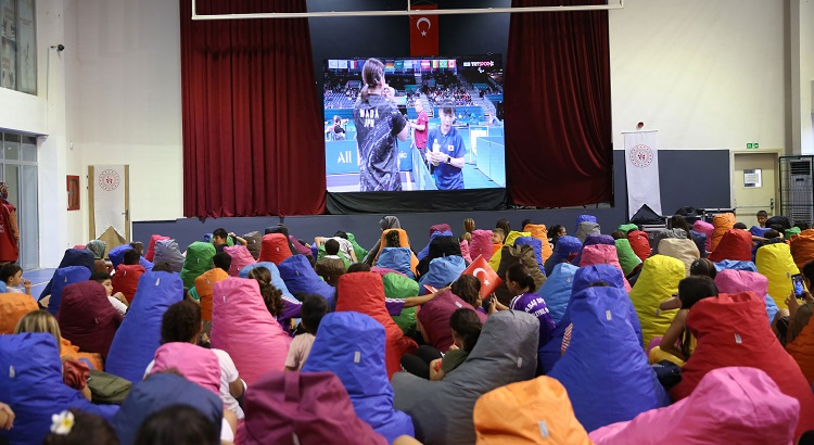 Hatay İskenderun’da öğrenciler, Paris 2024 Paralimpik Oyunları’ndaki müsabakaları dev ekrandan seyretti.