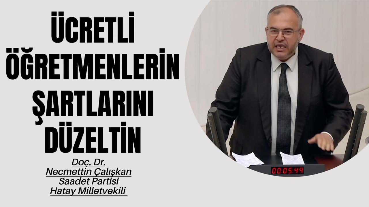 Saadet Partisi Hatay Milletvekili Doç. Dr. Necmettin Çalışkan, Türkiye Büyük Millet Meclisi’nde görüşülen Öğretmenlik Meslek Kanunu’na ilişkin eleştirilerde bulundu. Çalışkan, yasanın yeni mağduriyetlere yol açacağını savunarak, “Bu yasa değil, olsa olsa yama. Burada yapılan faaliyet de yasama değil, olsa olsa yamama faaliyetine benziyor.” ifadelerini kullandı.