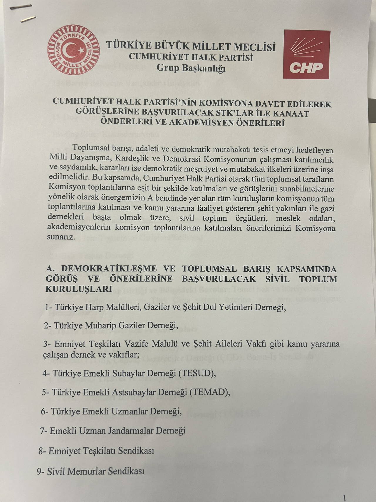 CHP İzmir Milletvekili Murat Bakan, partisinin sosyal medya hesabından komisyona davet edilmesi ve görüşlerine başvurulmasını istedikleri dernek, vakıf ve sendikaları açıkladı.