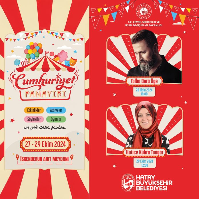 Çevre, Şehircilik ve İklim Değişikliği Bakanlığı ve Hatay Büyükşehir Belediyesi 29 Ekim Cumhuriyet Bayramı’nı deprem bölgesindeki çocuklar ve aileleriyle birlikte kutlamak için Cumhuriyet Panayırı düzenlendi.