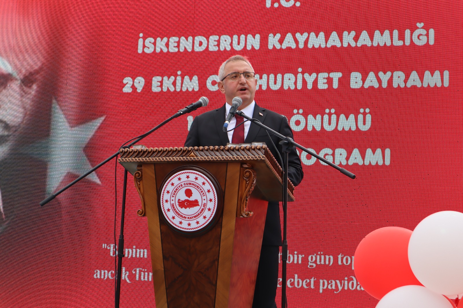“İskenderunlular Cumhuriyetimizin 102. yılını kutlamanın sevinciyle hepinizi saygıyla selamlıyorum. Toplum hayatımızda özel bir yeri olan milli bayramlar bizi millet yapan değerleri canlı tutmak ve yüceltmek toplumsal barış ve huzurumuzu pekiştirmek için önemli fırsatlardır. İşte biz de bugün tüm Türkiye’de Türkiye