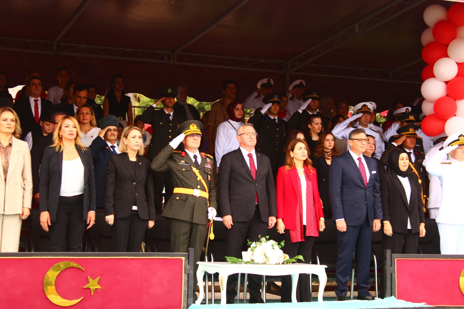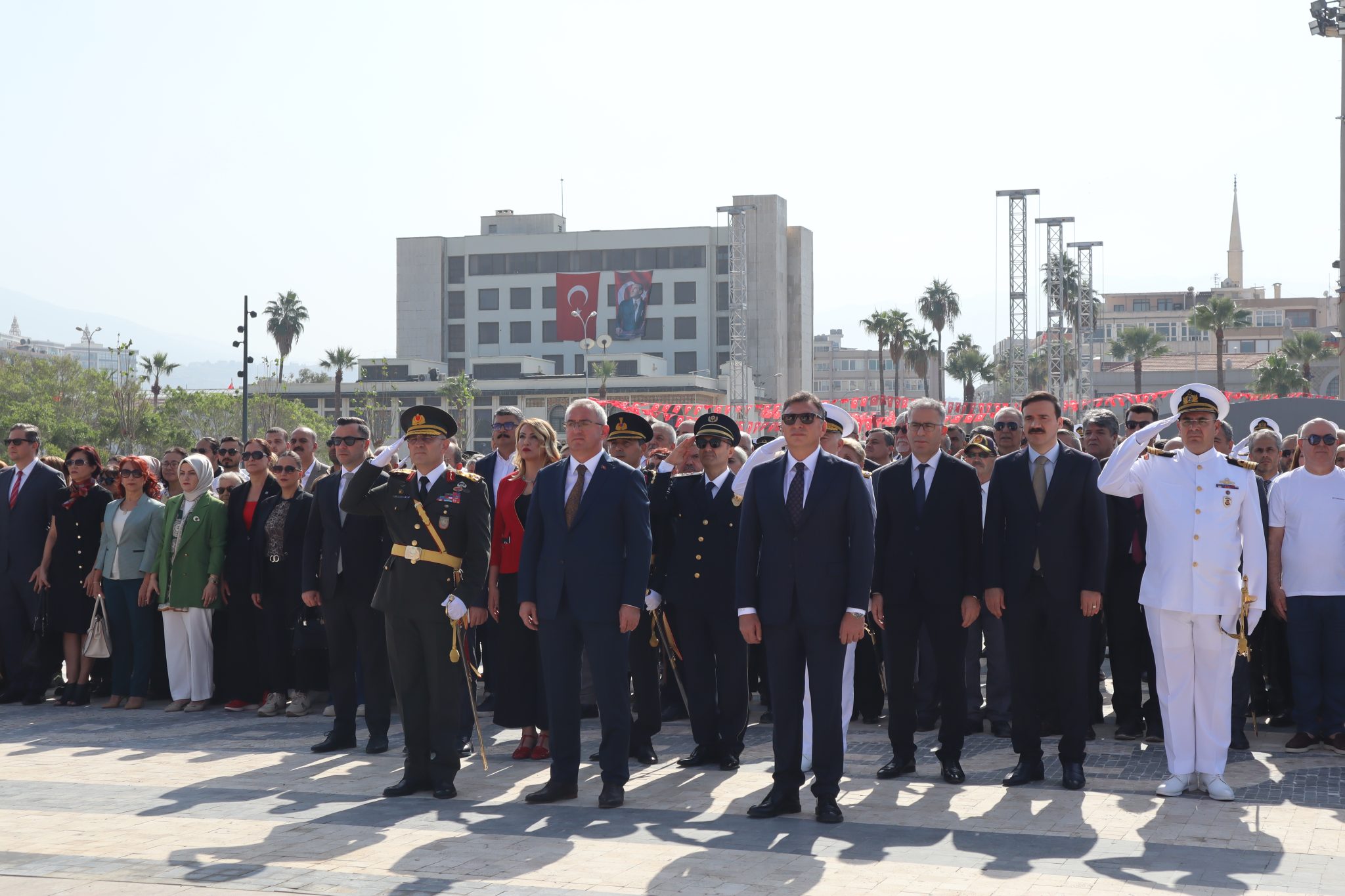Cumhuriyetimizin kuruluşunun 102’inci yıldönümü Çelenk Törenine, İskenderun Kaymakamı Muhammet Önder, CHP Hatay Milletvekili Nermin Yıldırım Kara, Garnizon Komutanı Tuğgeneral Bülent Tarhan, Belediye Başkanı Mehmet Dönmez, Deniz Üs Komutanı Tuğamiral Osman Çevik, Cumhuriyet Başsavcısı Muhammet Emin Ünalan, Adalet Komisyonu Başkanı Mahir Taştimur, İlçe Emniyet Müdürü Nevzat Güneş, İlçe Jandarma Komutanı Mustafa Açık, Sahil Güvenlik Doğu Akdeniz Grup Komutanı Yarbay Onur Emir, İlçe Milli Eğitim Müdürü Ali Haytaz, kamu kurum ve kuruluş yetkilileri, siyasi parti ve sivil toplum kuruluşu temsilcileri, öğrenciler, öğretmenler ve vatandaşlar katılım gösterdi.