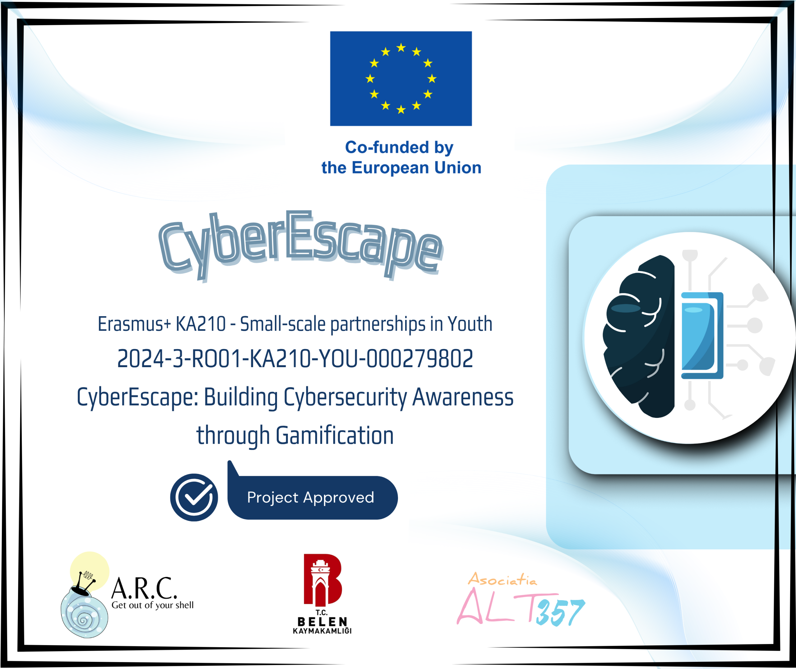 Avrupa Birliği tarafından Erasmus+ Gençlik Alanında İş Birliği Ortaklıkları kapsamında finanse edilen 2024-3-RO01-KA210-YOU-000279802 numaralı “CyberEscape: Oyunlaştırma Yoluyla Siber Güvenlik Farkındalığı” projesi, Romanya Ulusal Ajansı tarafından kabul edildi.