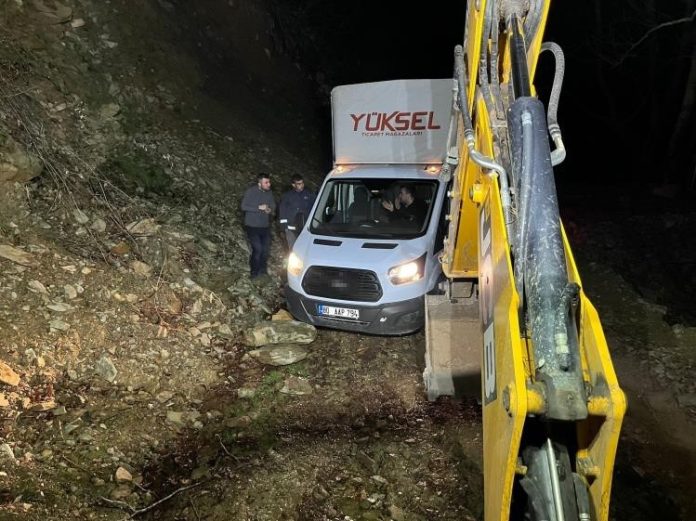 Edinilen bilgilere göre; Osmaniye’nin Kadirli ilçesinden Dörtyol ilçesine beyaz eşya sevkiyatı gerçekleştiren ekip, navigasyonun önerdiği güzergahı takip ederek dağlık ve riskli bir yola girdi. İlerledikleri orman yolunda yollarını kaybeden çalışanların kullandığı kamyonet, çamurlu zemine saplanarak hareket edemez hale geldi. Durumu fark eden 3 kişi, 112 Acil Çağrı Merkezi’ni arayarak yardım istedi.