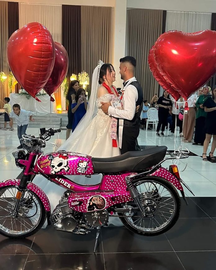 Dörtyol ilçesinde yaşayan Süleyman Türker, Ayşegül Türker ile hayatını birleştirdi. Dörtyol ilçesinde gerçekleştirilen düğün, yoğun katılımla yapıldı. Motosiklet tutkunu damat, eşine hediye olarak düğün esnasında özel tasarım motosiklet hediye etti. Herkesin önünde hiç beklemediği anda hayali olan motosiklete kavuşan gelin, şaşkınlık yaşadı. Gelin Türker’in motosiklete sarılması ve çalıştırıp gaza basması renkli görüntülere sahne oldu. Türker çifti, yaşadıkları mutlulukları dile getirdiler.